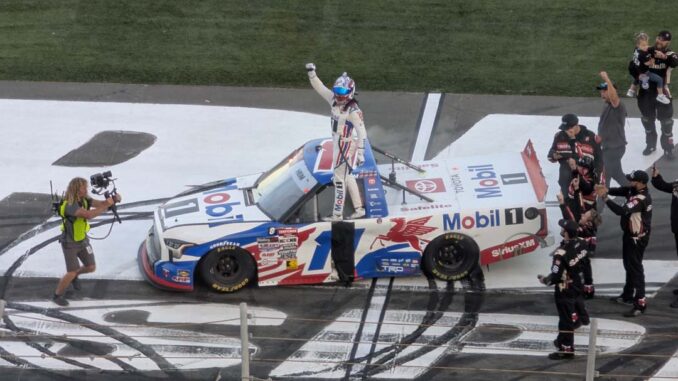 But Tricon wasn’t done writing. One lap before the white flag, Toni Breidinger — driving, of course, for Tricon — ran out of gas and stalled. NASCAR, generous with yellows all day, had no choice but to throw another. Cue overtime.