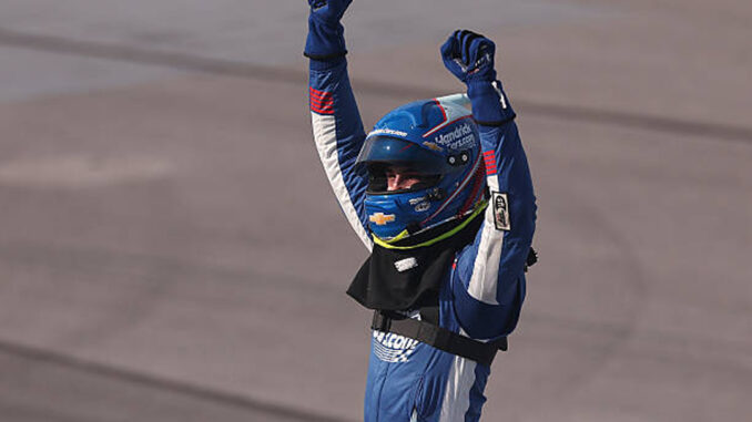 The 20-year old Californian sprint car driver delivered the multi-time NASCAR Cup Series championship Hendrick team its first O’Reilly Auto Parts Series victory at Talladega and this weekend earned a win for a special “guest” crew member, former NFL great Jason Kelce who dressed out in Hendrick blue and helped transport tires for the team on pit road Saturday.