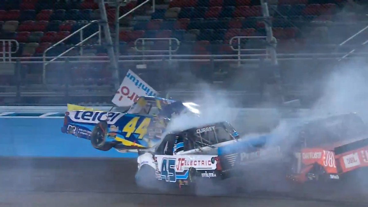 With 33 laps left, the tension was thicker than Daytona humidity. Layne Riggs, sent to the rear earlier despite winning the pole, was slicing his way through the field. Then, the inevitable: a spectacular crash in Turn 3 when Andres Perez bounced off both walls and collected Gio Ruggiero, Ben Rhodes, and Bayley Curry. Perez’s truck even got airborne. NASCAR threw the red flag for cleanup — eight minutes that felt like an eternity.