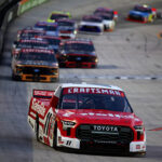 BRISTOL, TENNESSEE - APRIL 10: A general view of racing during the NASCAR Craftsman Truck Series Tennessee Army National Guard 250 at Bristol Motor Speedway on April 10, 2026 in Bristol, Tennessee. (Photo by Jonathan Bachman/Getty Images)