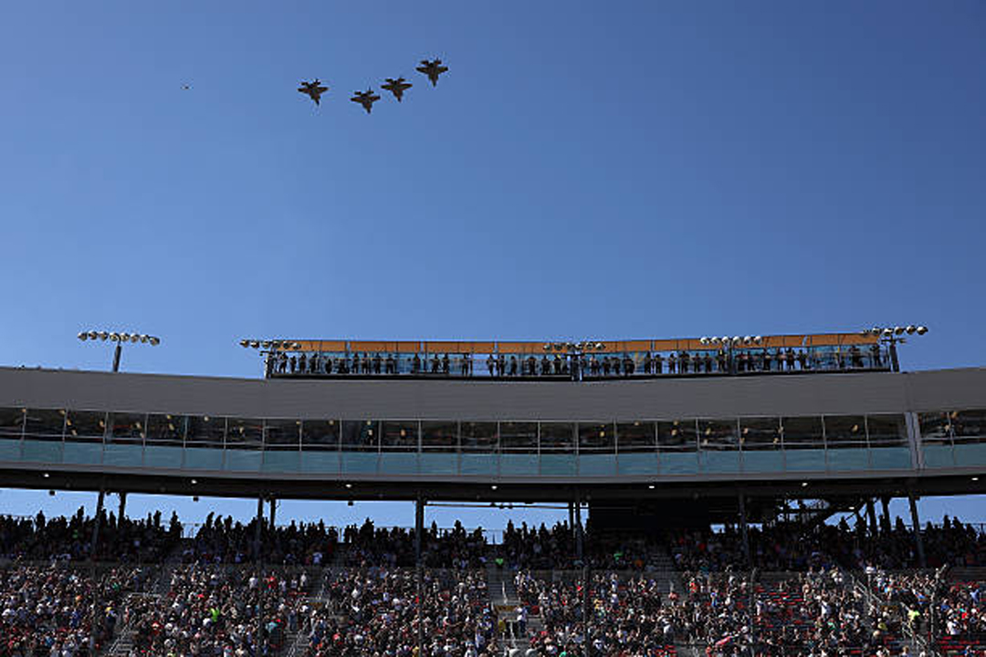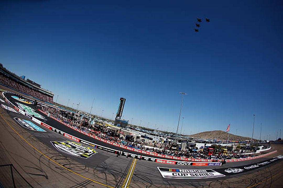 AVONDALE, ARIZONA - MARCH 08: A general view of the flyover during pre-race ceremonies prior to the NASCAR Cup Series Straight Talk Wireless 500 at Phoenix Raceway on March 08, 2026 in Avondale, Arizona. (Photo by Sean Gardner/Getty Images)