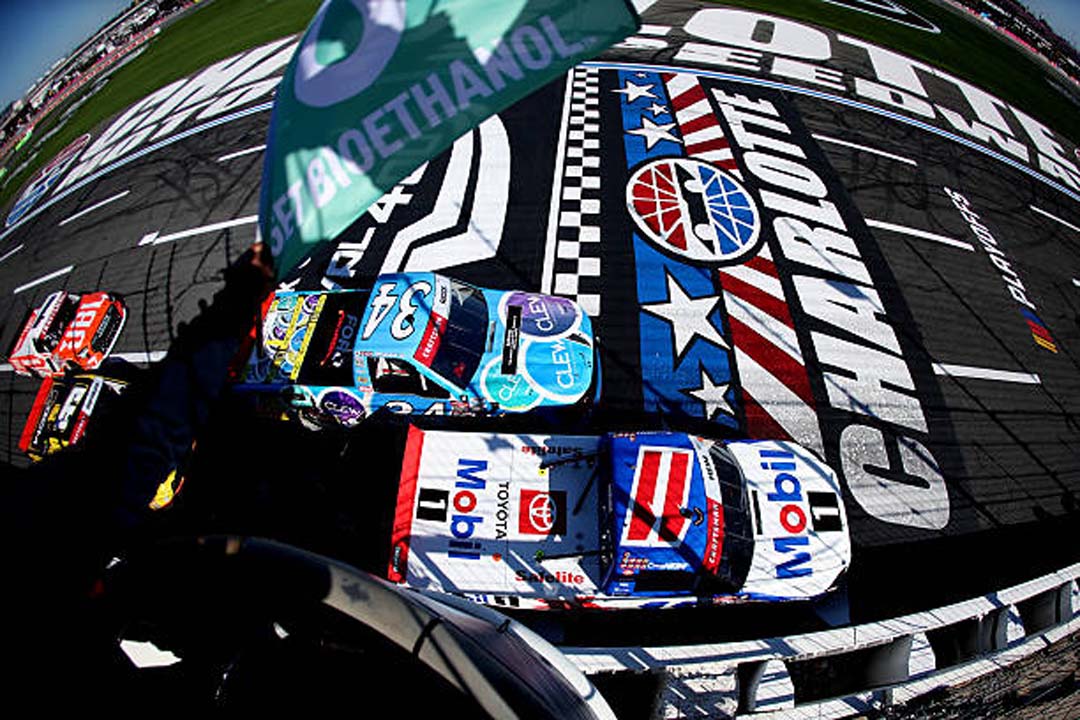 CONCORD, NORTH CAROLINA – OCTOBER 03: Corey Heim, driver of the #11 Mobil 1 Toyota, leads the field to the green flag to start the NASCAR Craftsman Truck Series EcoSave 250 at Charlotte Motor Speedway on October 03, 2025 in Concord, North Carolina. (Photo by David Jensen/Getty Images)