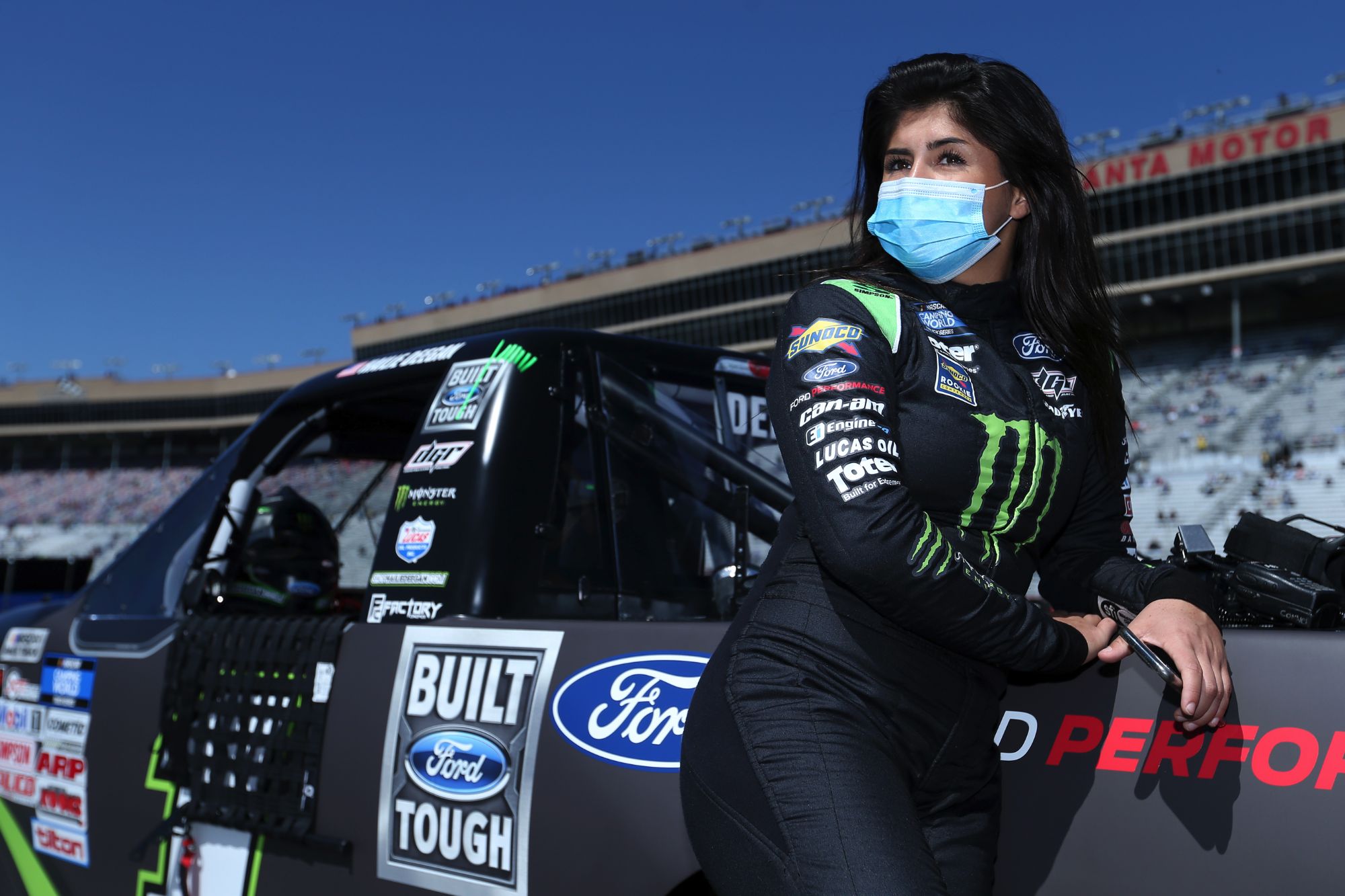 HAMPTON, GEORGIA – MARCH 20: Hailie Deegan, driver of the #1 BUILT FORD TOUGH Ford, waits on the grid prior to the NASCAR Camping World Truck Series Fr8Auctions 200 at Atlanta Motor Speedway on March 20, 2021 in Hampton, Georgia. (Photo by Sean Gardner/Getty Images)