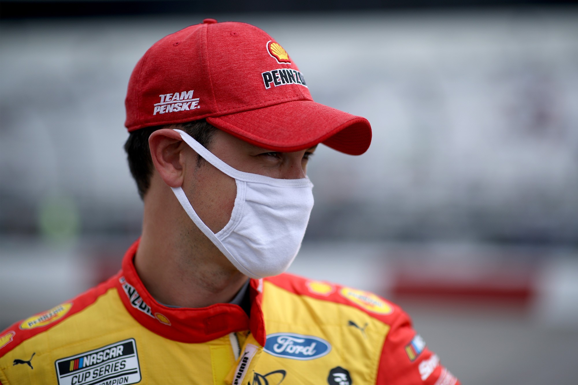 RICHMOND, VIRGINIA – APRIL 18: Joey Logano, driver of the #22 Shell Pennzoil Ford, waits on the grid prior to the NASCAR Cup Series Toyota Owners 400 at Richmond Raceway on April 18, 2021 in Richmond, Virginia. (Photo by Sean Gardner/Getty Images)